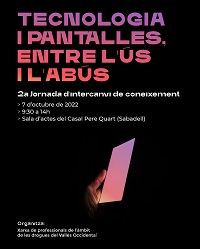 Més de quaranta tècnics i tècniques de la Xarxa de professionals de l’àmbit de les drogues del Vallès Occidental van participar a la jornada «Tecnologia i pantalles, entre l’ús i l’abús», el passat 7 d'octubre a Sabadell. És la segona jornada d’intercanvi de coneixement organitzada per la Xarxa.